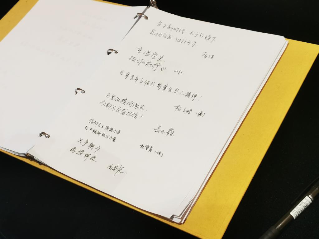 同学们在展览馆留言簿上深情留言
