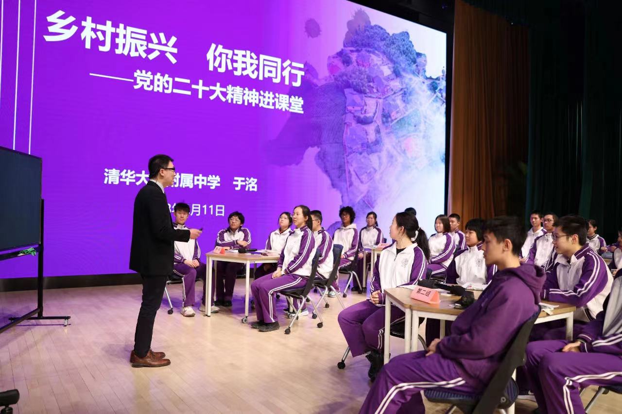 李蕉老师是清华大学课程思政教学研究中心副主任、马克思主义学院副院长、北京市高校首批思政课特级教师。她带领同学们从当今时代的不确定性出发,以史明鉴,在回望了近代以来中国不同时期青年在面临变局时所做的选择后,呼吁新时代附中学子要有“功成不必在我”的境界,更要有“功成必定有我”的担当,同德同心,形成新气象,展现新作为。