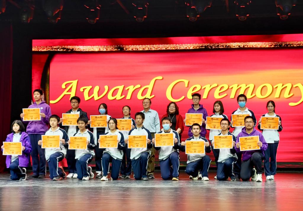 全年级共有18个班级,每班分为多个小组。赛前,各班抽签决定表演内容及出场顺序。在比赛现场,同学们个个实力强劲,朗读语音纯正、表演惟妙惟肖,堪称一场精彩的英语视听盛宴。经过紧张的角逐和评委专业的评定,大赛产生了多个团体奖项及个人奖项。两位特邀嘉宾王英民老师、娄云老师为获奖班级代表颁发了奖状。