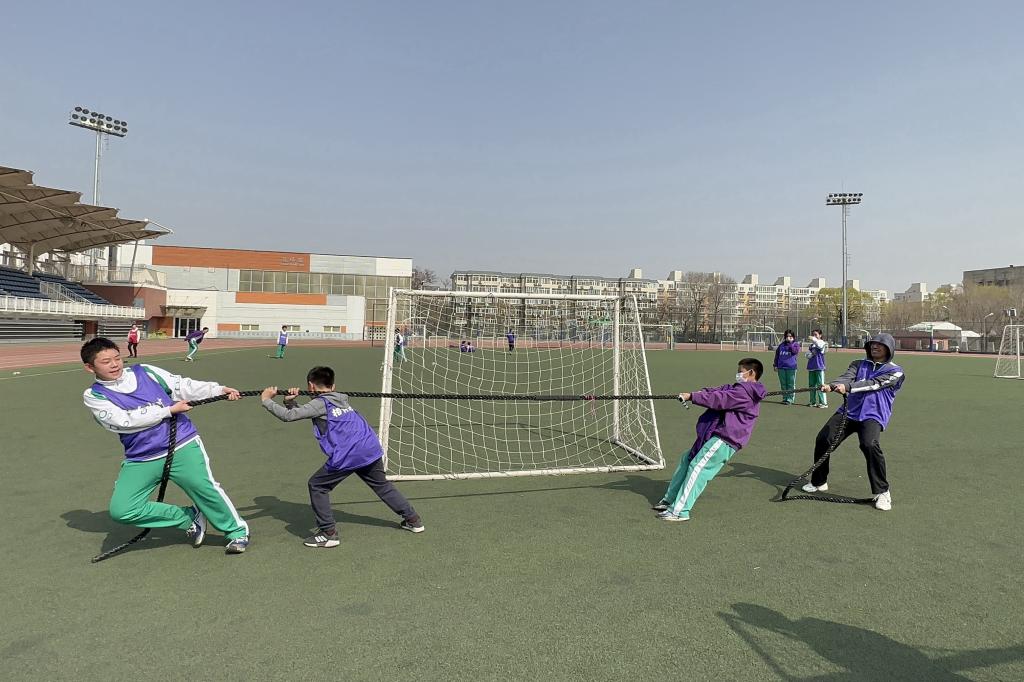 为了达到亲子互动的目的,家委会还在操场内贴心地安排了趣味游戏环节:波速球,平衡板,障碍跳,体能绳。同学们还自发玩起了拔河比赛。家庭内互动,家庭间相识,欢声笑语充满了整个操场。