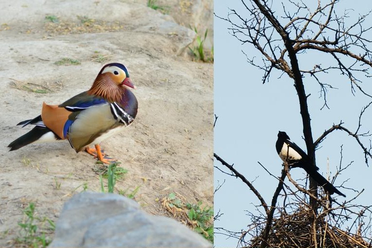 在动物学专业教师高祺和房鹏的带领下,生物组教师参与识别了圆明园丰富的动物、植物物种。沿着圆明园湖边,老师们观察到了黑天鹅、黑水鸡、骨顶鸡、苍鹭、鸳鸯、鸊鷉、绿头鸭、喜鹊等圆明园常见物种,分析了华北地区常见鸟类的习性以及近年来圆明园鸟类物种丰富度提高的原因。老师们沉浸在人与动物和谐相处的美好画面中,感叹近年来圆明园生态环境治理的可喜成果。