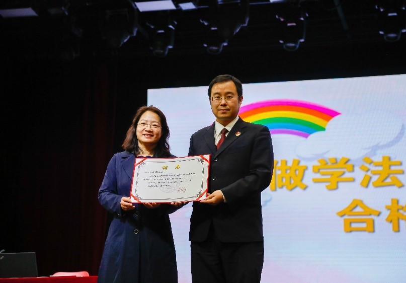 李书霞主任为金朝主任颁发“水木讲堂”聘书