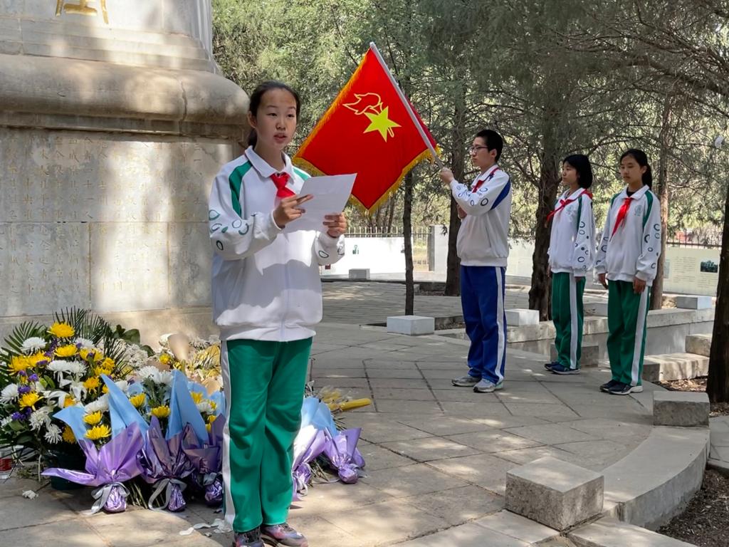 清明节到来之际,为缅怀和悼念为革命逝世的烈士,教育学生继承革命先烈的光荣传统,发扬民族精神,弘扬先烈遗志。2023年3月31日中午,皇冠体育官网“缅怀革命先烈,传承红色基因”主题队日活动在圆明园三·一八烈士纪念碑前举行。皇冠体育官网学生发展中心主任王田,团委书记任星阳,少先队大队辅导员李冰带领皇冠体育官网初21、初22级学生干部代表共32人参加了此次追思先烈活动。