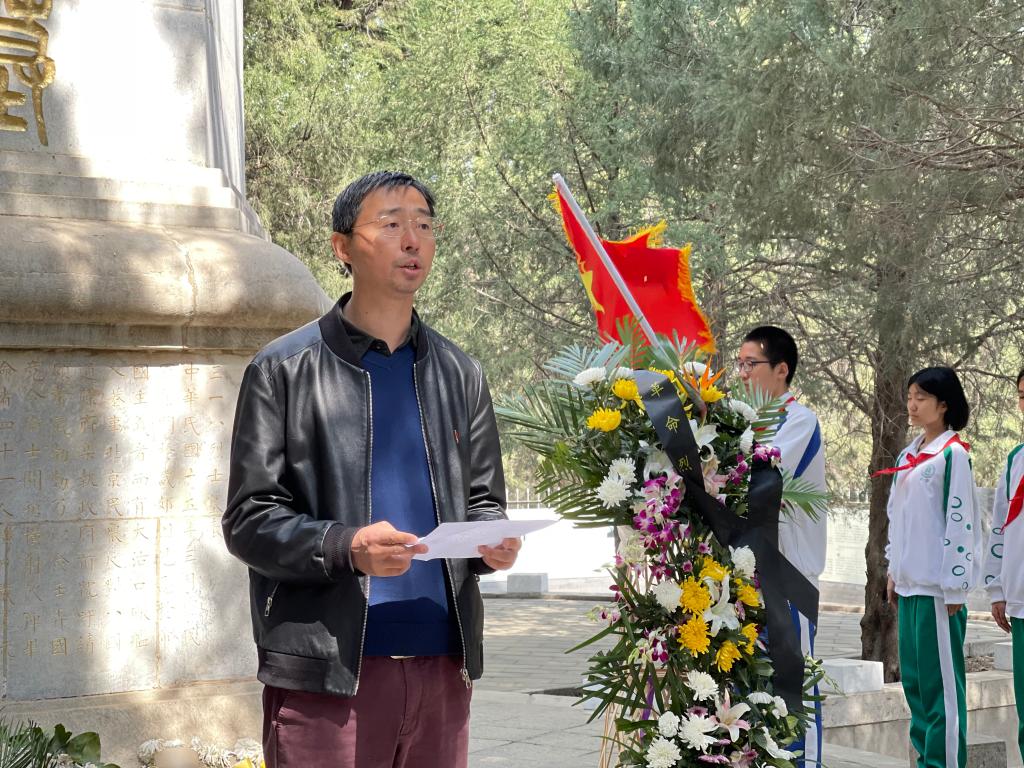 最后,王田老师讲话。他缅怀了多位英烈的光辉事迹,并指出此次祭扫活动是在革命先烈的见证下进行的爱国主义教育,对同学们有着特殊的意义。他鼓励同学们当“生逢盛世当不负盛世,生逢其时当奋斗其时”,用自己的“小梦”共铸国家的“大梦”,用青年人的“少年梦”托起全国人民的“中国梦”。希望同学们一起朝着“中国梦”的美好目标勇敢前进!