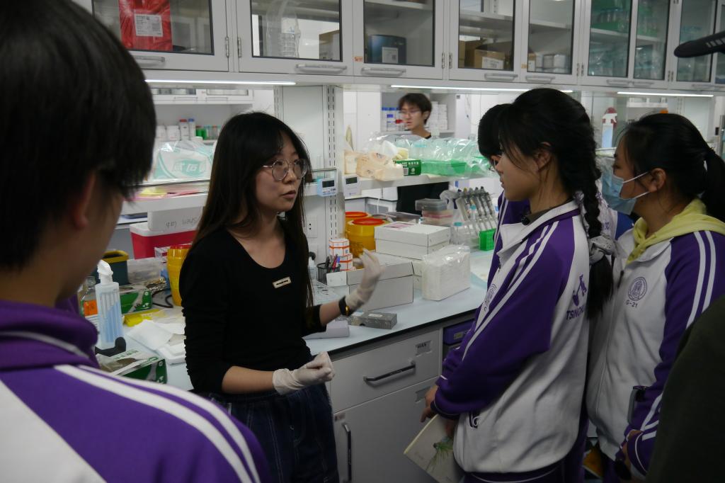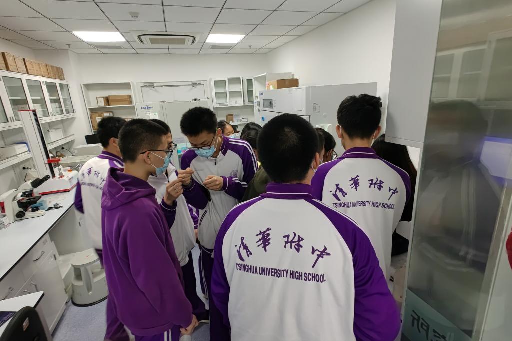 在北京生命科学研究所的实验室中,同学们看到了用于研究再生和衰老的鱼类动物——非洲鳉鱼,了解了关于实验动物养殖及相关工程方面的知识;参观了利用小鼠等模式动物、结合现代生物科技手段进行造血及成骨细胞相关研究,近距离观察了科研工作者进行动物实验的操作流程,还对前沿的各类生物化学检测仪器进行了了解与操作。