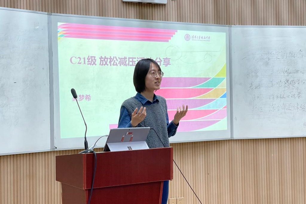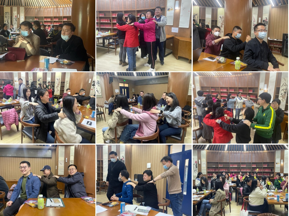 首先,吴梦希老师给大家介绍了“正念”这一概念,鼓励大家通过正念练习专注当下。她带领大家进行正念活动,一起感受正念的力量,并建议各位老师带领学生一起做正念练习。她带领大家做了按摩接龙、吹气球、吹泡泡等热身游戏,一起在紧张的工作之余进行放松。