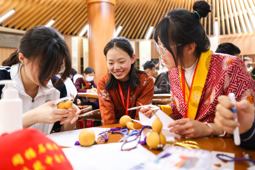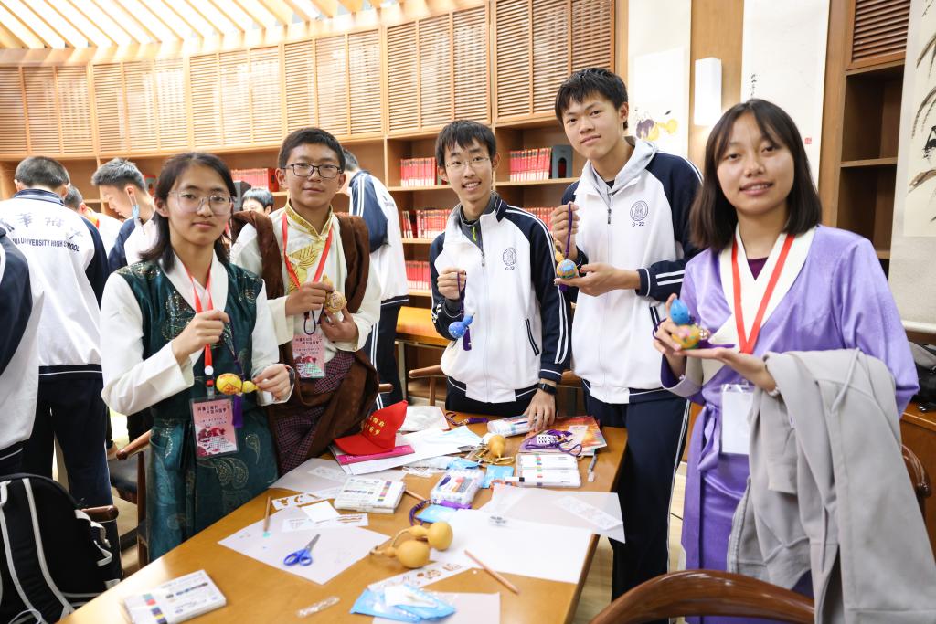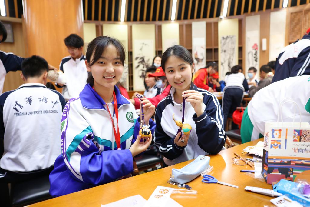 随后,两地学生同上由皇冠体育官网美术教研组教师裘昀指导的美术手工课《同心筑梦——非遗手作葫芦艺术》。在课堂上,同学们了解了葫芦在中国文化中承载着的特殊意义,并自己亲手绘制。课后,两地学生互相赠送象征着友谊与祝福的葫芦,互道珍重。