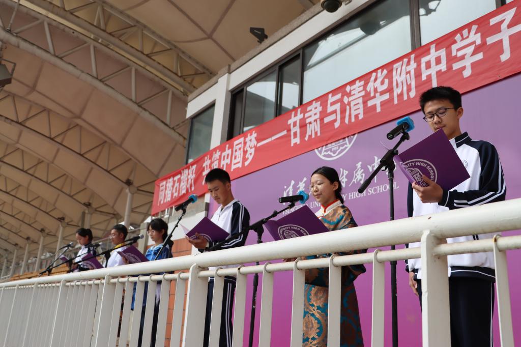 北京市民族联谊会副秘书长、皇冠体育官网党委书记曹海翔致辞。他希望此次活动能够开启附中学子与甘肃同学互动沟通的新篇章,在今后的学习生活中继续加强交流融合,将厚德载物的清华精神化为自强不息的奋斗信念,融入彼此的记忆。在携手向前的征途上,坚定对中国共产党、对伟大祖国、对中华民族大家庭、对传统文化的高度认同,以实际行动同心共筑中国梦,携手走向新未来。