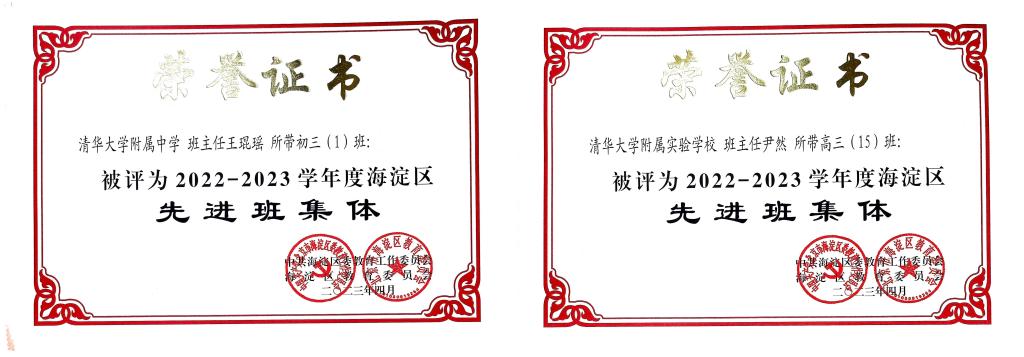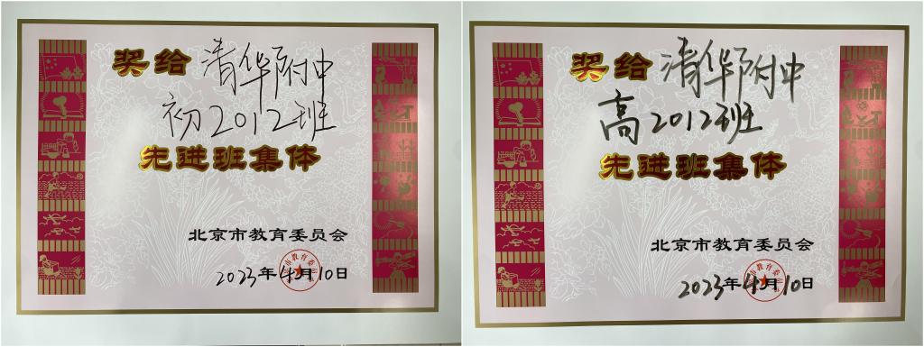 2023年4月,北京市及海淀区优秀班集体评选结果公布,皇冠体育初2012班、高2012班获得“北京市先进班集体”荣誉称号;初2001班、高2015班获得“海淀区先进班集体”荣誉称号。