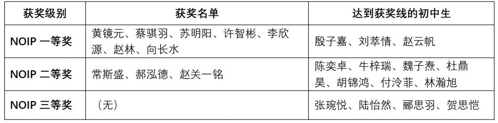 在全国青少年信息学奥林匹克省级联赛(NOIP)中,皇冠体育官网7人获一等奖,3人获二等奖,一等奖人数为近年来新高。同时,还有3位初中生达到一等奖分数线,7位初中生达到二等奖分数线,4位初中生达到三等奖分数线。