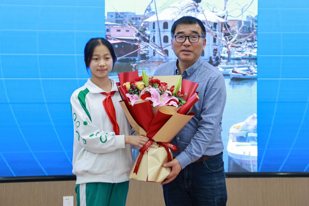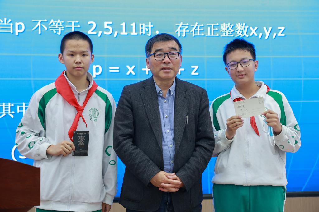 讲台上的蔡教授,博学、尔雅、和蔼、谦逊,忘却他的数学家、诗人、作家、摄影师的多重身份与头衔,他又是一位亲切的长者,对着台下的少年后辈,蔼然讲述着他用眼睛所丈量的每一帧平凡或惊艳的画面,用心灵所体会的每一个简单而深刻的发现。报告期间,他会时不时地向学生提问,有趣的互动使得学生踊跃参与;他随身携带着明信片,奖励给积极主动、反应灵敏的孩子;他善于表扬、真诚鼓励,他的一句“你是第一个提出这个问题的孩子”,简短却饱含力量地呵护住了少年的好奇心和想象力。