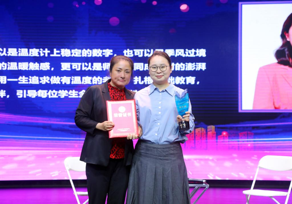 校长方妍为获奖教师张日月颁奖