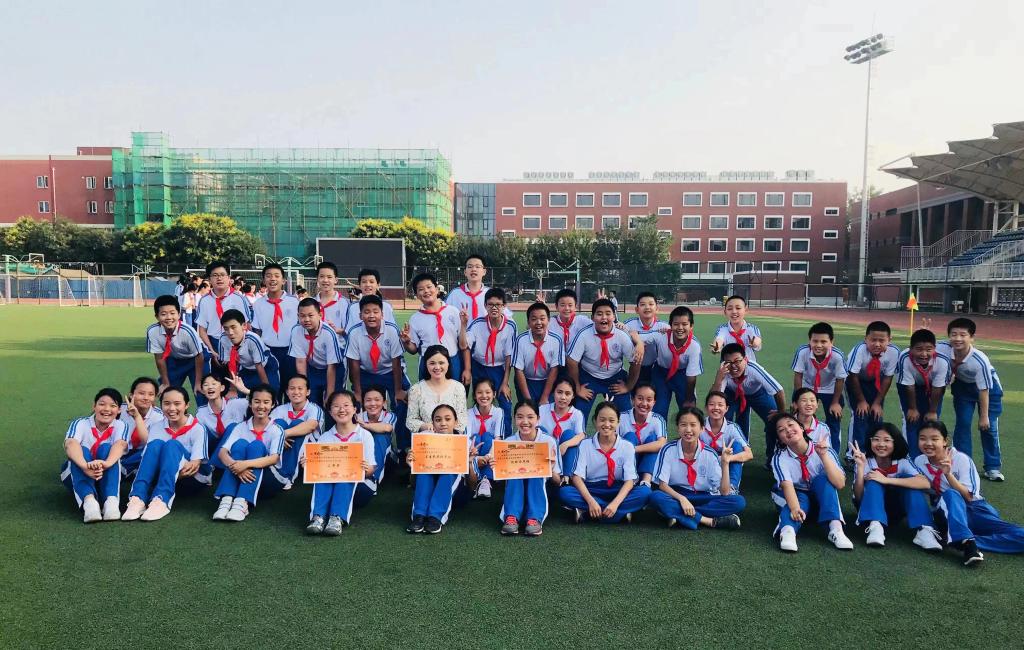 语文教研组教师许姗姗(一排左五)与她的学生们