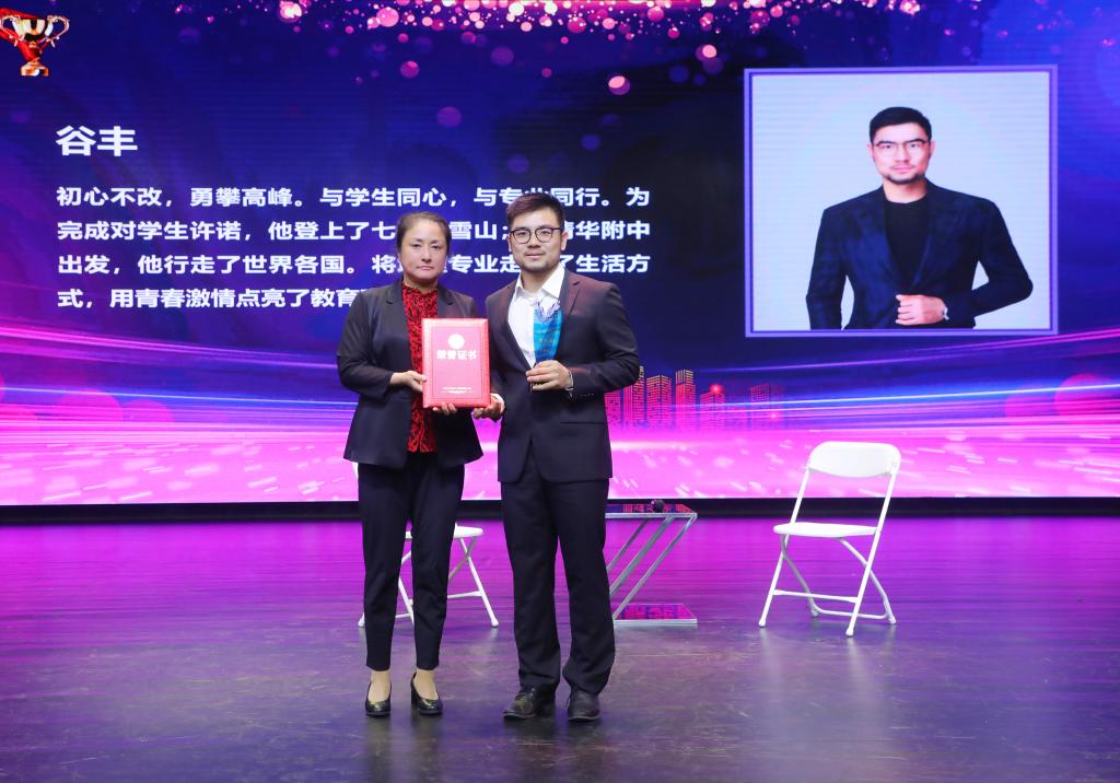 校长方妍为获奖教师谷丰颁奖