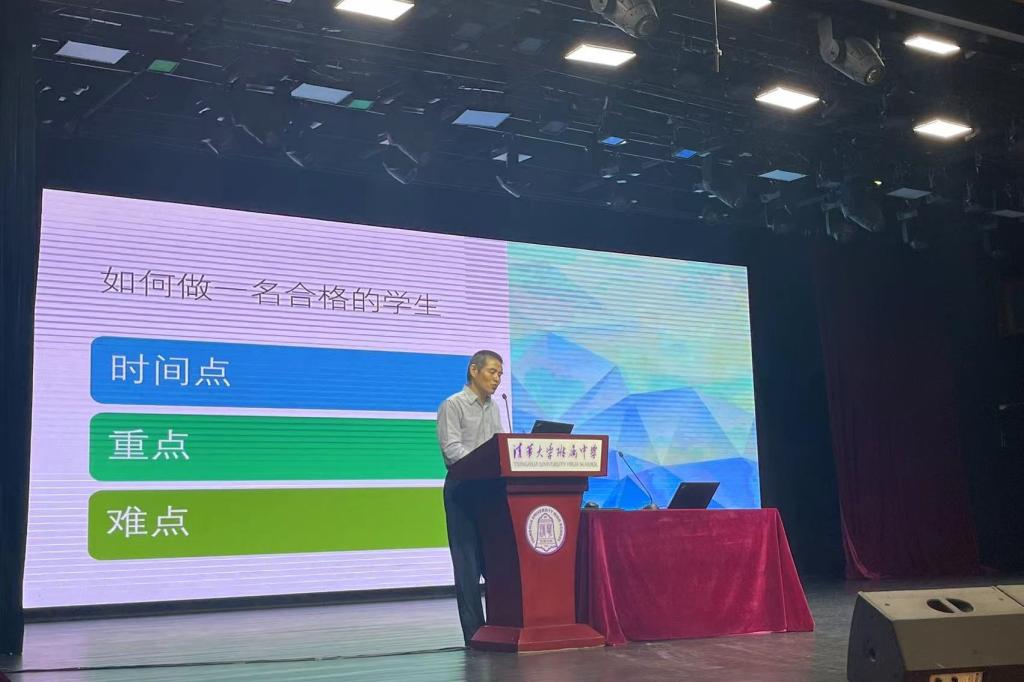 接着,清华大学潘长勇教授做家庭教育指导,强调家长信任孩子、信任老师、信任学校,培养孩子的学习力,潘老师嘱托全年级家长一起做快乐的追梦人,只要大家在努力,就是距离目标更近一步,给家长们打了一剂强心针。