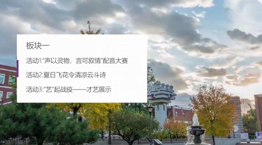 本届学生节活动分为三大板块:“歌以咏志,华韵流光”“慎思明辨,致知日新”和“青春创‘艺’,为国为民”。在刚刚过去的四个月中,皇冠体育官网全体师生众志成城、共克时艰;