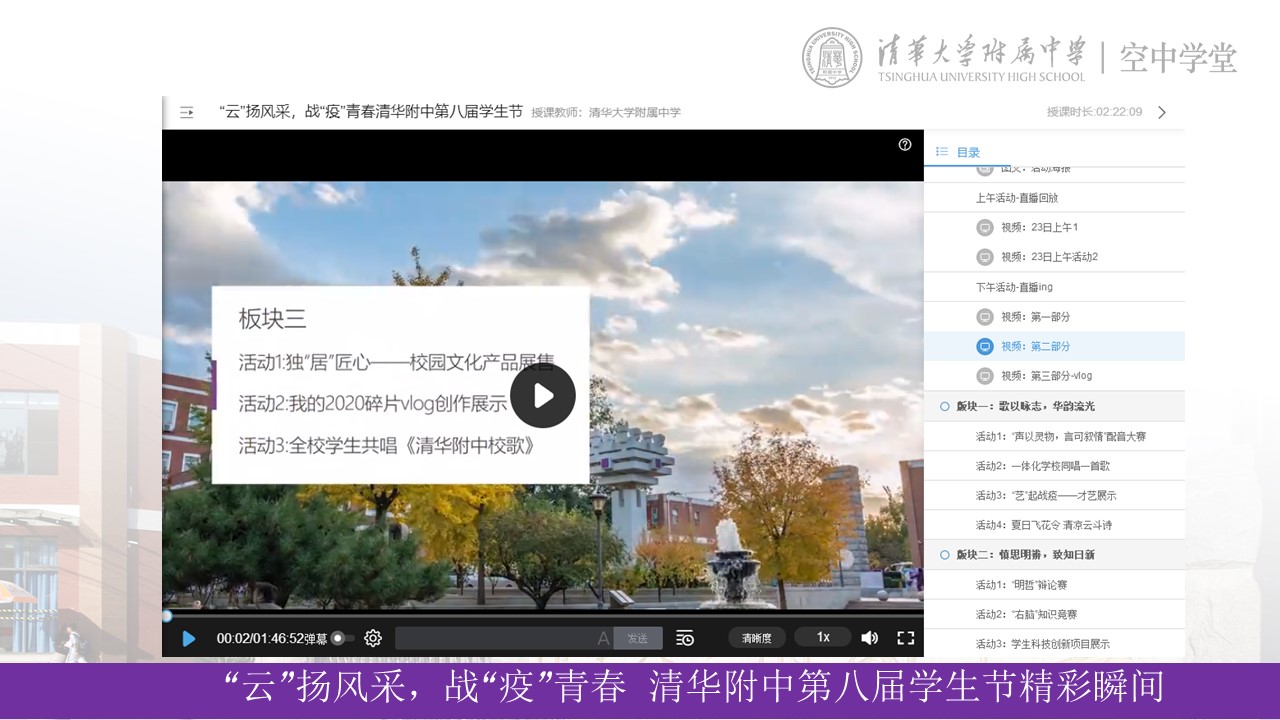 “西山脚下,圆明园旁……”在本次线上学生节活动的尾声,熟悉的旋律再次悠扬,全校师生共同唱响《皇冠体育官网校歌》,在欢歌中一同祝福附中,祝福祖国!