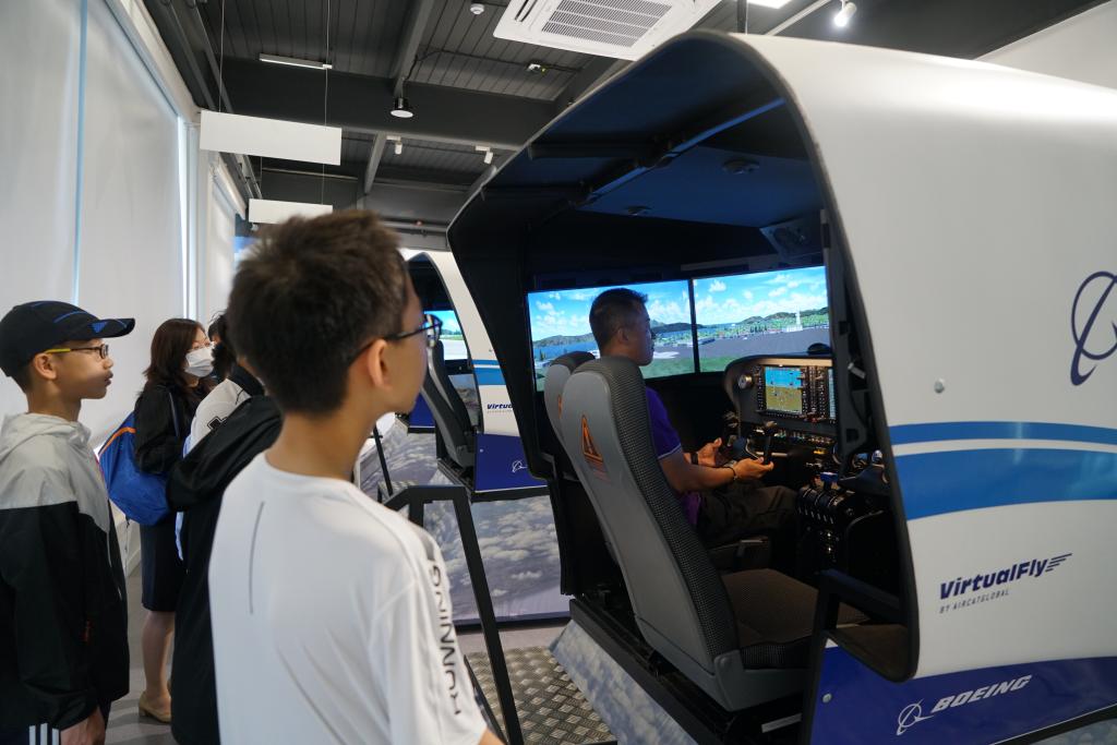 同学们在波音·牛顿飞行学院进行模拟飞行体验