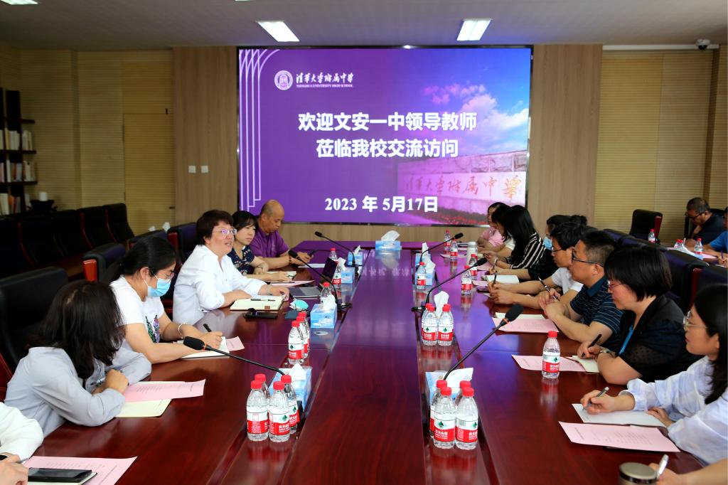 2023年5月17日,教育部部属高校县中托管帮扶学校文安县一中一行25人由副校长李大舵带队,王维主任全面负责,到皇冠体育官网交流访问,双方就学校办学理念、校园文化、学校课程体系建设、学生培养以及特色人才培养等方面进行了深入交流。