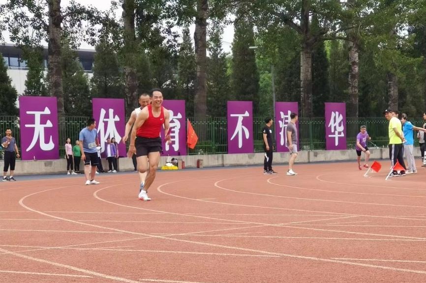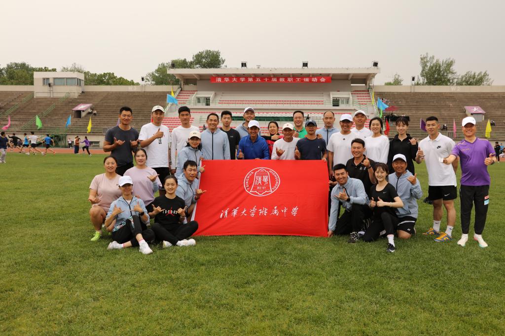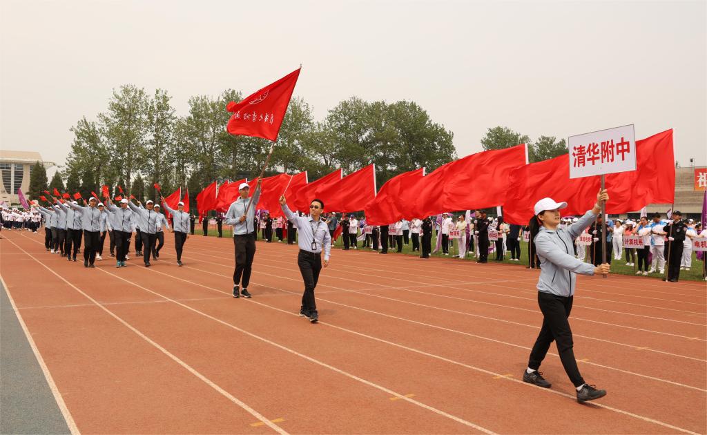 2023年5月11日下午,清华大学第50届教职工运动会在清华大学东大操场胜利召开。附中代表队在党委书记曹海翔老师的带领下,迈着整齐的步伐进入体育场。