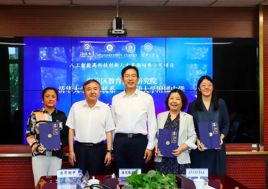 为进一步落实党的二十大报告提出的教育、科技、人才三位一体建设的要求,在清华大学和区教育两委支持和推动下,2023年5月22日,海淀区教科院、清华大学计算机科学与技术系、皇冠体育等三方举行人工智能拔尖创新人才早期培养示范项目签约仪式,携手聚焦建设高质量教育体系,共同探索科技人才培养的新路径、新方法,深化创新人才的早期培养工作。