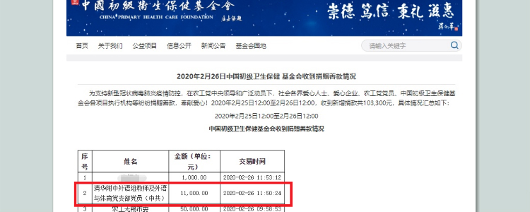 在支委和教研组的统筹下,外语与体育联合党支部所有党员、外语教研组所有教师均慷慨解囊,在短短的两个小时里共筹集爱心捐款11000元,并将善款捐赠中国初级卫生保健基金会支援武汉的专项。
