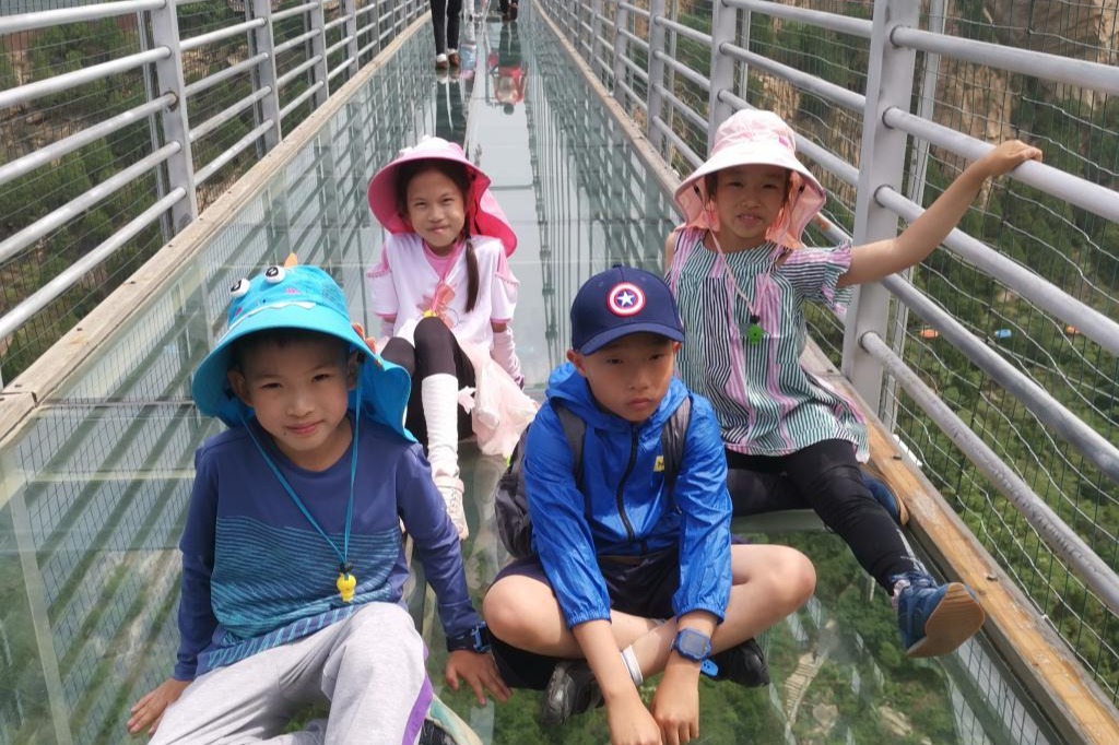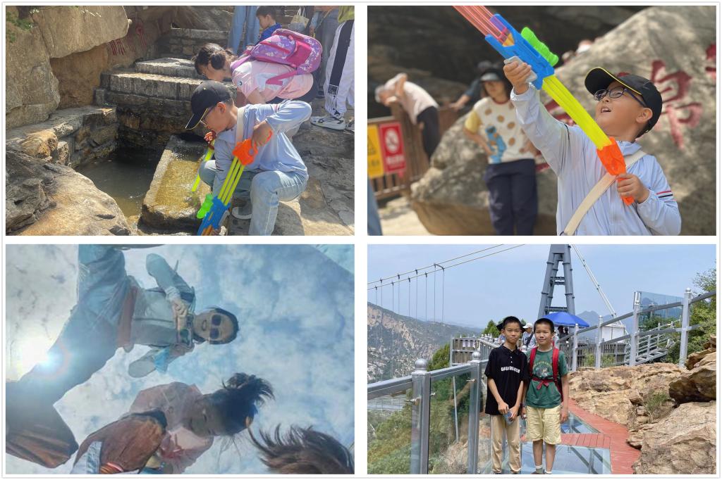 抵达密云清凉谷景区后,教职工和孩子们领略九重天、清凉胡、千尺珍珠瀑、清心潭喜仙瀑、乐仙瀑垂绵潭的风光,还可以在水晶长城环眺周边美景。有的老师和孩子一起挑战自己,体验刺激的玻璃大桥、漂流、乘缆车等项目。有些没有登山的家庭,选择和孩子们一起戏水,呼吸森林里的新鲜空气,亲近自然。清凉谷四处全是高入云天的雄峰,给人一种奋发向上的感觉。