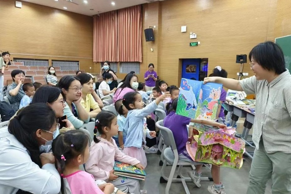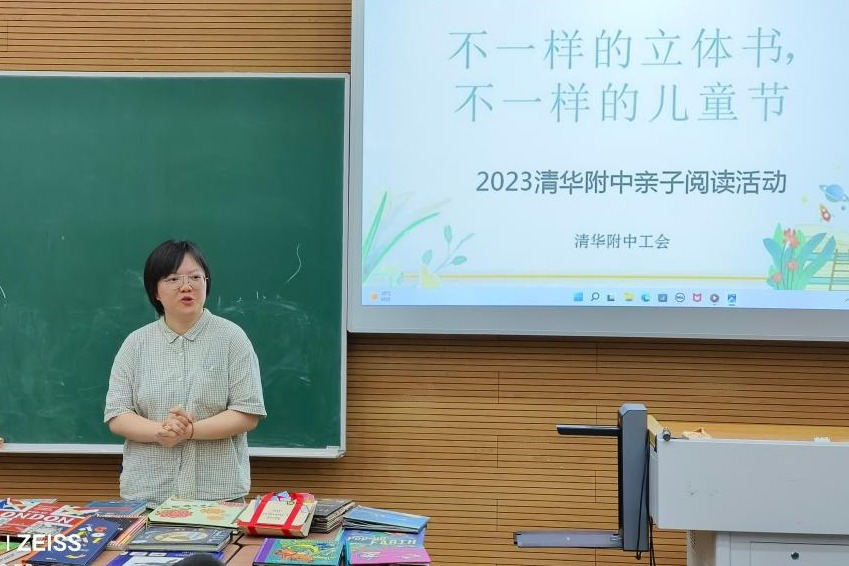 为培养教职工与孩子之间良好的亲子关系,让教职工子女度过一个有意义的儿童节,2023年6月2日,附中工会在华实楼D211举办了“不一样的立体书 不一样的儿童节”亲子阅读活动。党委副书记兼工会主席张洁老师参与,绘本推广人刘杨老师指导,附中教职工与孩子约70余人参加。