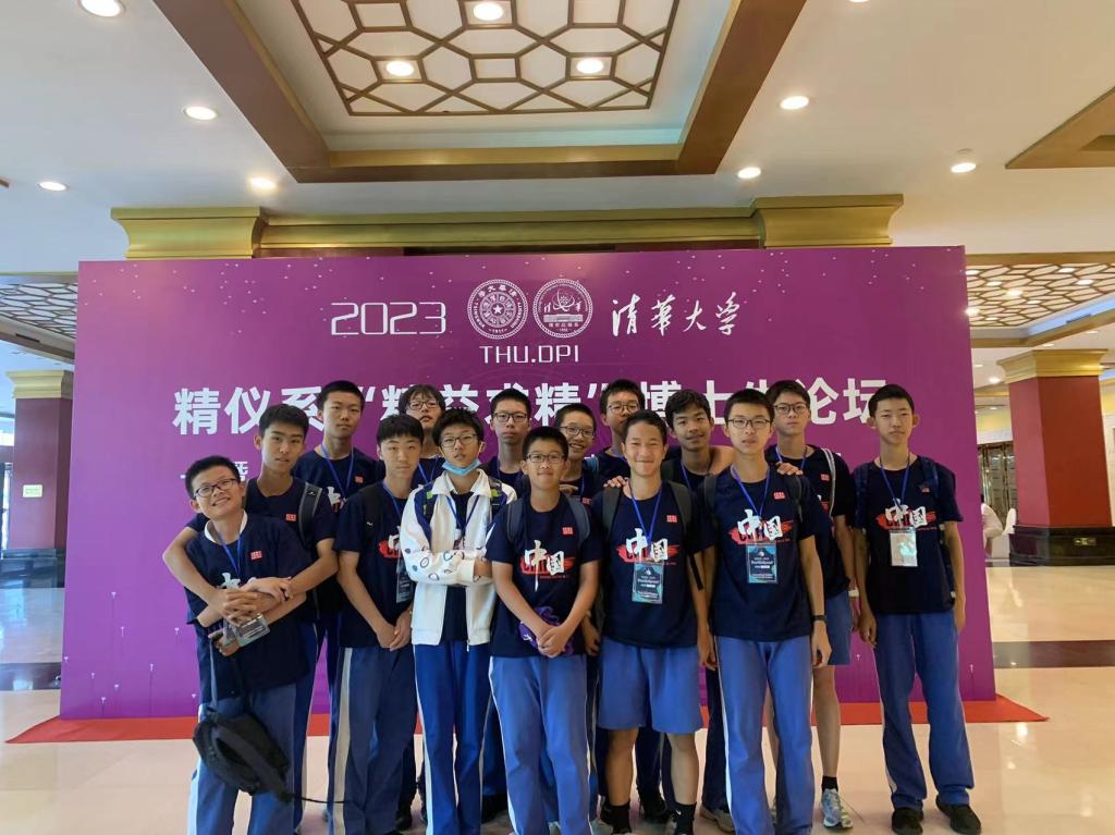比赛前全体队员合影(第一排:荀思源、许思铭、赵宗成、田宇禾、熊浩洋、陈昱宁、程天宇,第二排:李京宸、王弈涵、陈奕卓、张柏睿、王远豪、张桐宇、余子易、乔瀚鸣)