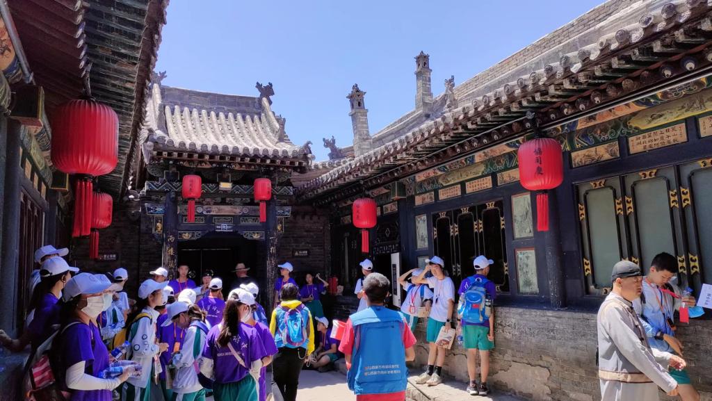 学生在乔家大院拍照留念