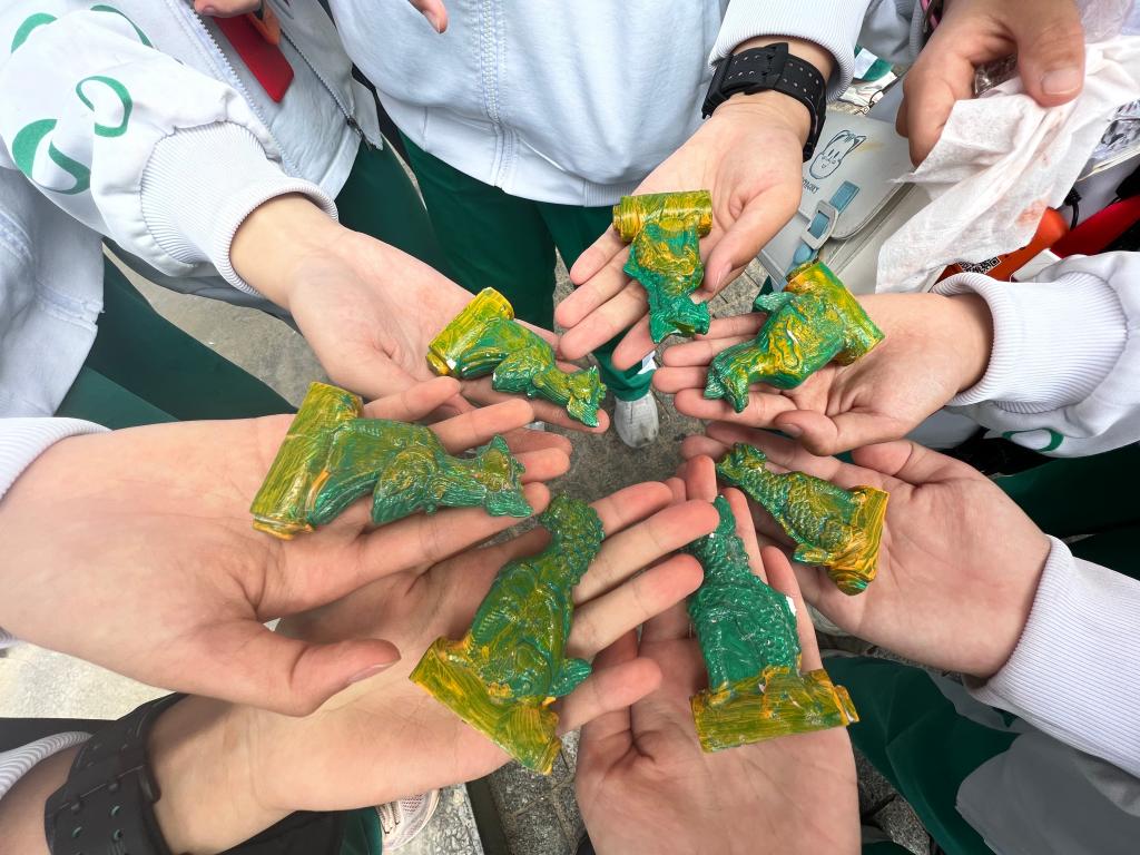 学生体验“考古挖掘”晋祠屋顶上的琉璃脊兽盲盒