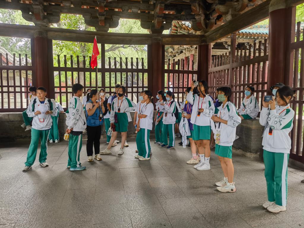 学生认真听导游介绍晋祠