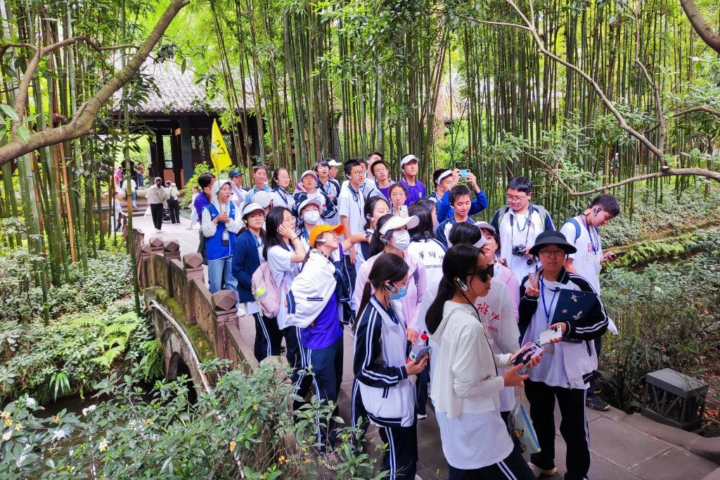 第一站,两组师生分别前往成都市内的两大历史文化遗迹——杜甫草堂和武侯祠,参观历史古迹、感受先贤风采,诗圣、智圣的人品才学令同学们敬仰追忆,也让大家对接下来的成都之行充满期待。