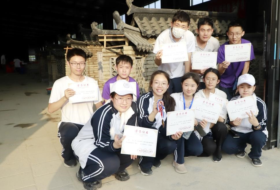 学生与砌筑作品合影