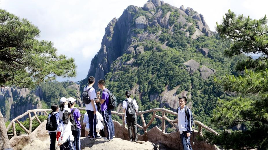 第三天,学生们来到黄山风景区,探究黄山四绝、地质成因、云海成因、松树形态成因。通过采访守松人,学生么了解了迎客松的24小时保护举措,学习迎客松精神。领略祖国壮丽山河,增强意志品质,增强生态资源保护意识。下午,学生们欣赏了黄梅戏淳朴流畅的唱腔,了解了地方戏曲特色,并学唱黄梅戏的经典唱段《女驸马》。