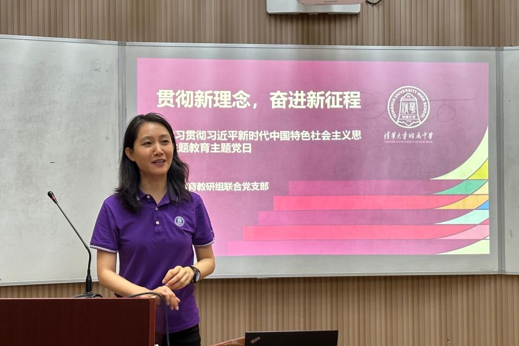 本次组织生活的第一部分是专题理论学习体会和成果分享。专题一是“增强使命担当,开拓发展新局”,来自初中英语党小组的孙晓芳、苗琳达、吴威和范皖晴四位老师就该专题学习进行分享。孙晓芳老师从专业知识能力、学生个性化发展、家校合作及教育教学理念方法等四个方面介绍了自己的学习心得。苗琳达老师从附中实际出发,谈了自己对教育强国的理解,并坚定了作为附中教师,潜心教书育人的信念。而吴威老师作为初三教师,讲述了自己在教育教学实际中以身作则、关注学生个体差异、参与教育教学改革以及加强家校沟通的感悟。