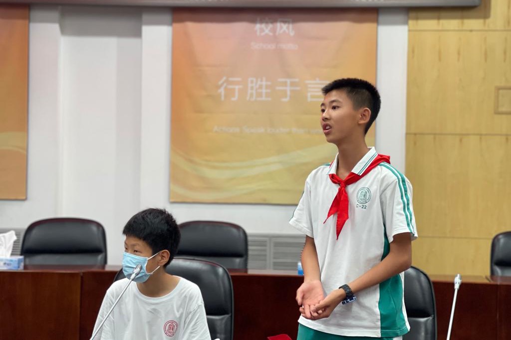 皇冠体育官网校长方妍、副校长白雪峰,学生发展中心主任李书霞、王田,团委书记任星阳及少先队大队辅导员李冰,与来自初高中非毕业年级的40位学生代表参与了本次活动。