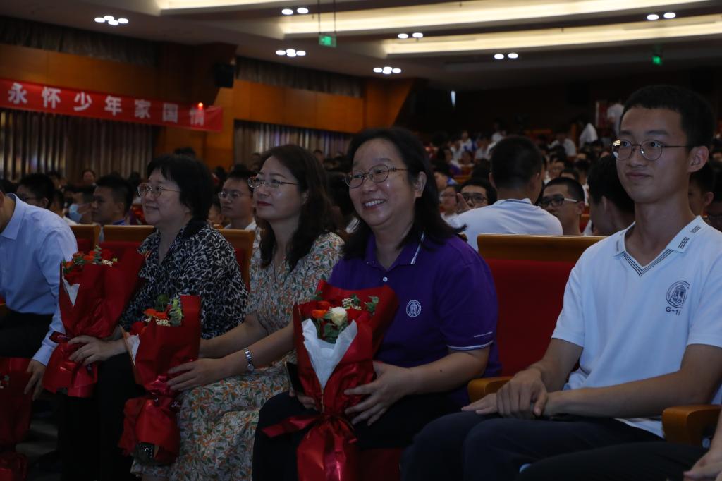 第二幕生动再现了疫情期间线上教学的片段。物理潘天俊老师的风趣幽默、年级副组长宫睿哲老师的温柔细致、政治于洺老师的辛勤奉献和体育王鹏老师的激情洋溢给同学们留下了深刻印象。师生们的表演引来台下阵阵掌声。随后,学生代表为场下的全体高三教师献花,感恩教师们的谆谆教诲与爱心陪伴。