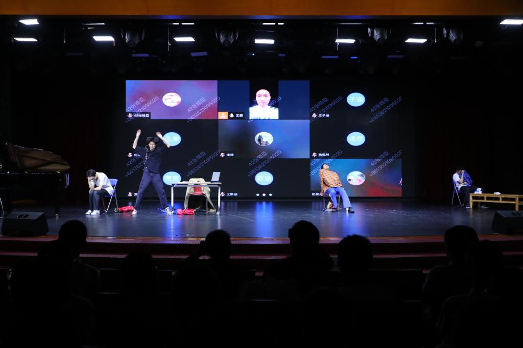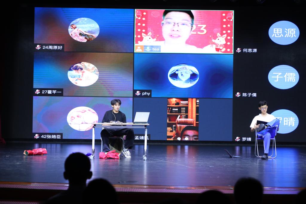 师生演绎“线上物理课”情景