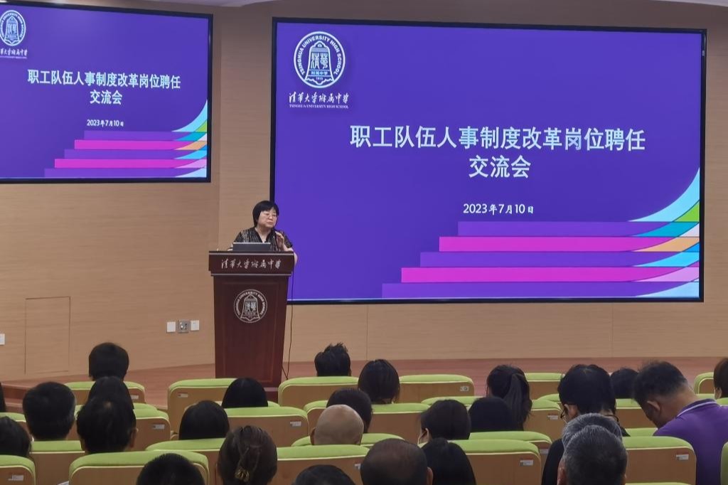方妍校长讲话。她介绍了皇冠体育职工队伍人事制度改革的背景。她强调,职工队伍建设在学校发展中发挥重要作用。学校要建设高素质、专业化、创新型职工队伍,希望各位职工深刻理解学校的育人目标,为培养胸怀天下、体魄健全、内心丰盈、拔尖创新、国际视野的学生发挥积极作用。她鼓励附中职员们在教育强国的时代背景中,与时代发展、与学校发展同频共振。