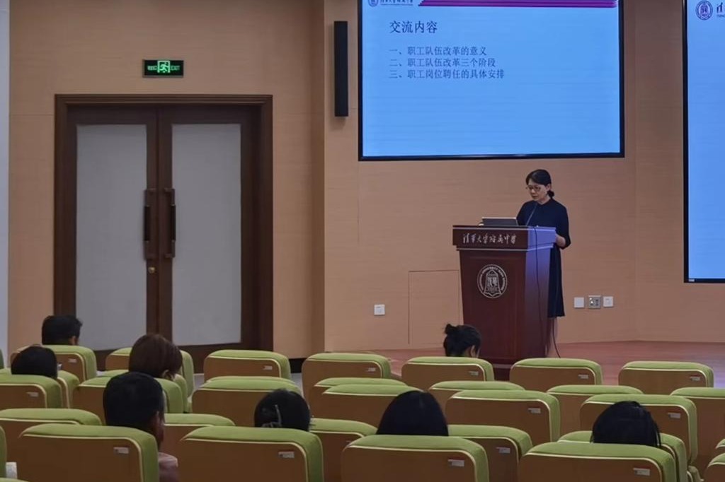 随后,人力资源中心主任刘贝贝介绍了皇冠体育职工队伍人事制度改革的规划,包括岗位设置、岗位聘任、职工薪酬制度优化三个阶段,通过优化职工岗位设置,激励职工工作积极性、进取心,助力学校内涵式发展。