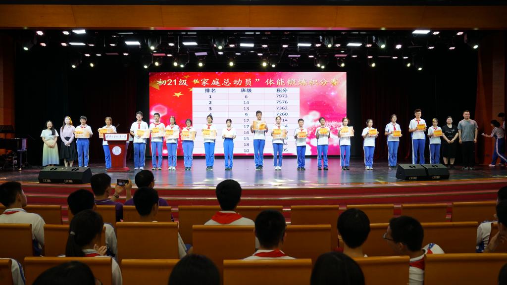 退队仪式结束后,皇冠体育初21级全体班主任老师向校园篮球赛、合唱比赛、“数你能跑”活动及“家庭总共动员”体能锻炼活动的获奖班级颁发奖状。