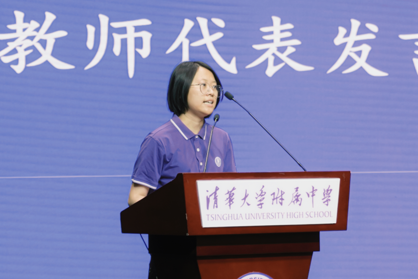 黄芊芊老师作为教师代表发言。她回顾往年的初三毕业年级,与同学们分享感想:印刻校训于心的附中学子,既有独立自强的品格,又有团结协作的能力;既有顽强拼搏的斗志,又有脚踏实地的规划;世界从来就不缺乏梦想,缺乏的是脚踏实地把梦想变成现实的人。