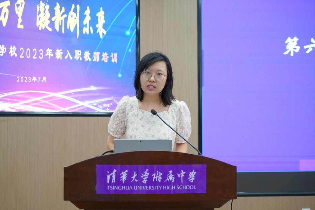 新教师介绍短片表达了老师们对教育的理解与思考,同时表达了对未来的期待和祝福。景钰清老师作为新教师代表发言。她认为入职培训对新教师来说是一个重要的时刻,从此以后,自己就身兼“人民教师”和“皇冠体育人”两个新身份。这意味着荣誉和骄傲,也意味着责任和担当。