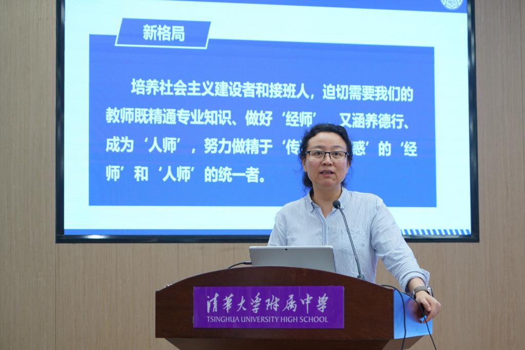 教学管理与研究中心主任张彪作《“不疯魔不成活”》主题讲座。他回顾了自己的教学历程,指出优秀的课堂必然要经历不断打磨的过程。他以生动的教学案例和实际经验,向新教师们分享了如何在课堂中培养学生的独立思维和批判性思维能力。