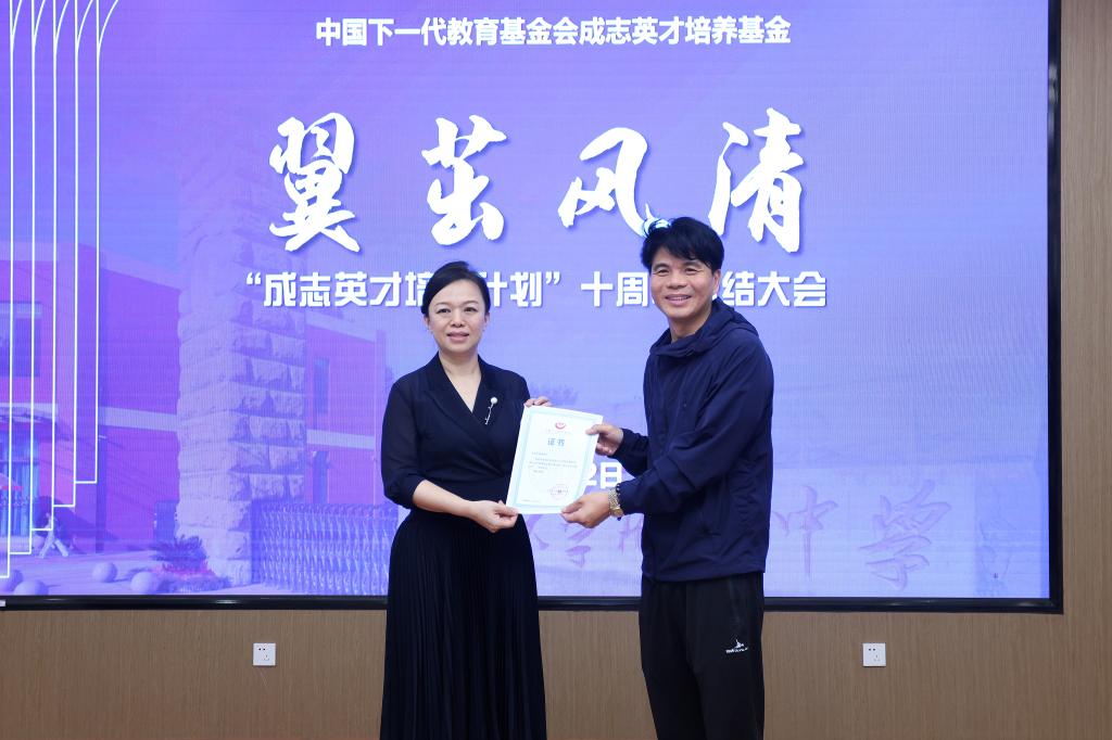 项目的蓬勃发展和硕果累累离不开爱心捐赠单位的鼎力支持,2022年起,龙湖公益基金会将持续5年向“成志英才培养计划”项目提供资金支持,聚焦于对教育欠发达地区的学生进行多元帮扶,为振兴乡村教育做出积极的贡献。吴涓向捐赠单位颁发证书,吴雁军代表捐赠单位接收证书并发表感言。