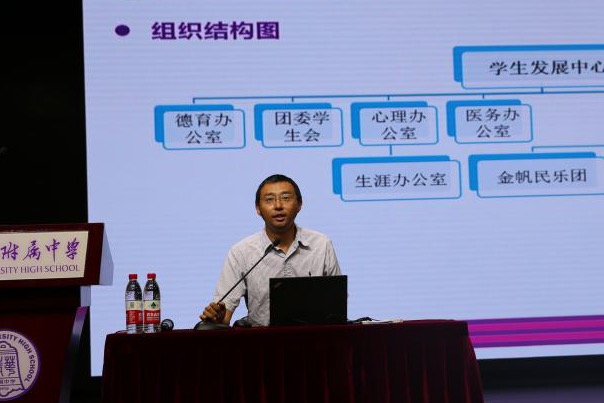 学生发展中心主任王田老师介绍附中学生德育与家校共育情况