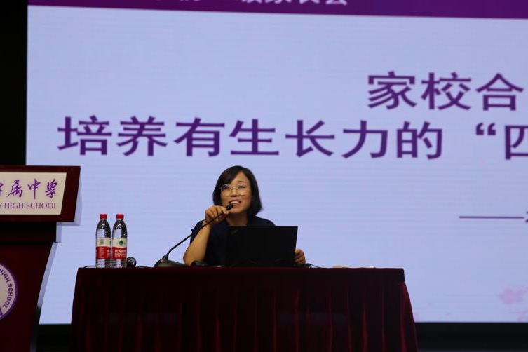 最后,初23级学部主任张晓琼老师介绍了新初一年级班主任情况,以“我们的孩子,要成为怎样的人”为主题,介绍了附中学生发展理念,提醒家长重视家庭教育,鼓励家校合力,培养“有文化”“有个性”“有见识”“有情怀”的“四有”附中少年。