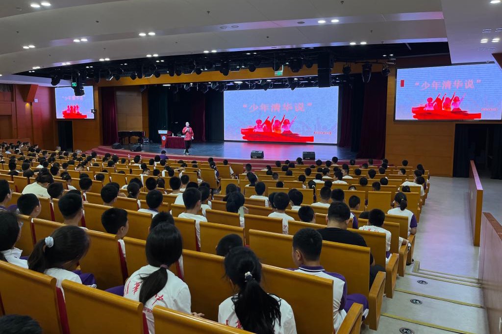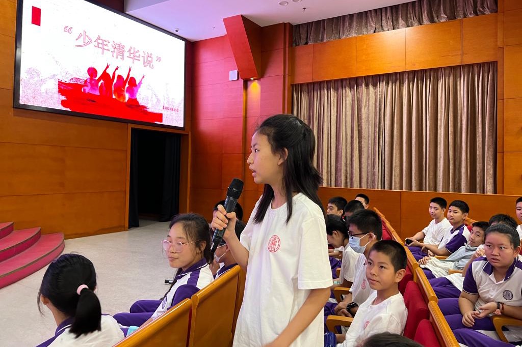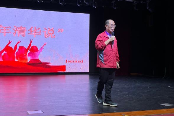 徐林旗教授首先向新初一学子介绍了清华大学的历史。清华大学拥有悠久的历史,他鼓励初23级全体同学“以天为责,以史为鉴”。徐教授提醒全体学生,“历史是最好的教科书,也是最好的清醒剂”,知史以明鉴,查古以知今。