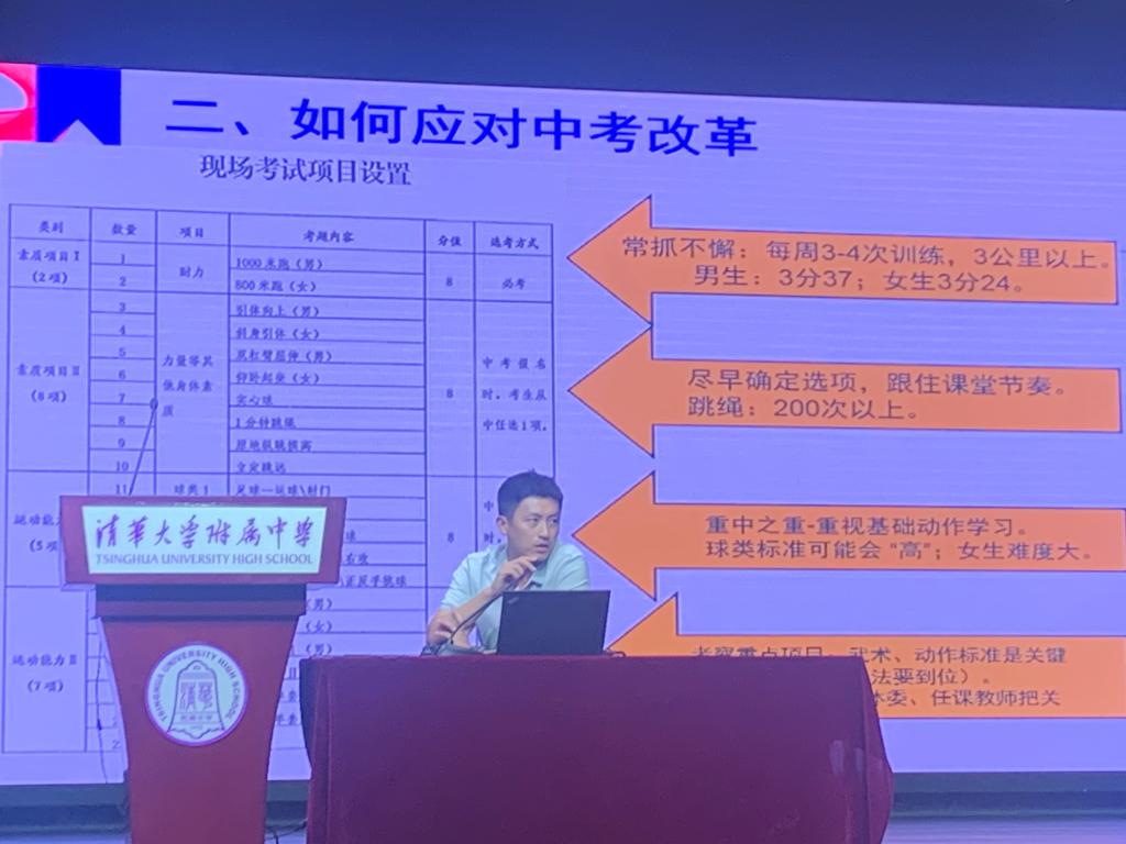 体育学科荆传涛老师针对体育学科在中考的改革,向学生提出高质量、高效率、高重视的培养目标。每周的体育锻炼要常抓不懈,设立“体能达人”的激励机制,每一位同学都要尽早确定备考选项,跟住课堂节奏。